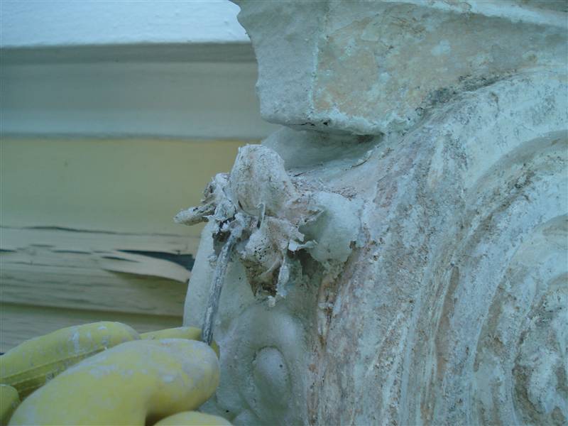 Un esempio di restauro su di una colonna, sempre per l’Hotel: